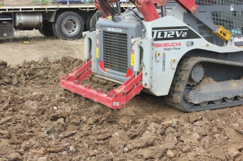 The addition of a rear ripper bar which is monitored by the rear camera completed the package.A residential construction site in Southwest Sydney showed that this one machine could easily and very quickly complete a typical cut and fill operation to prepare for a concrete slab.Borg Civilโs operations manager Jerry Zoric said โwe have had the new Takeuchi loader for just a couple of months. We have four Takeuchi radial lift loaders and thought it was worth trying this new TL12v2 vertical lift machine to see how it performed. It is a standard factory fitted machine with the addition of the ripper bars which we need for situations such as we are experiencing today.โWere impressed with the construction specification โ โ reverse cameras and the excellent appointments in the cabin. Itโs a great machine and has more than enough power needed for this type of application.