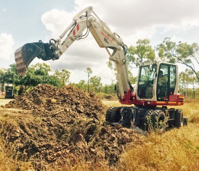 โWe had a new Takeuchi 8-tonne excavator working around Brisbane after last yearโs cyclone,โ explained Sticky, the Groupโs owner. โWhile that machine performed well, we realised a wheeled excavator could complete road construction tasks much faster. So we purchased a Takeuchi TB295W wheeled excavator to give us the mobility we needed.โ